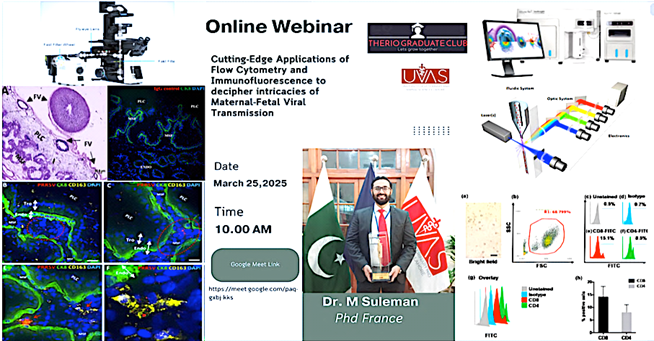 VC approved one-day webinar organized on “Cutting-Edge Applications of Flow Cytometry and Immunofluorescence to decipher Intricacies of Maternal-Fetal Viral Transmission." By Dr. Muhammad Suleman at Theriogenology Graduate Club (TGC), UVAS, Lahore on Mar 25, 2025. The webinar was attended by faculty and PG students and new insights were shared on advanced tools like flow cytometry and cryoimmuno-fluorescence imaging.