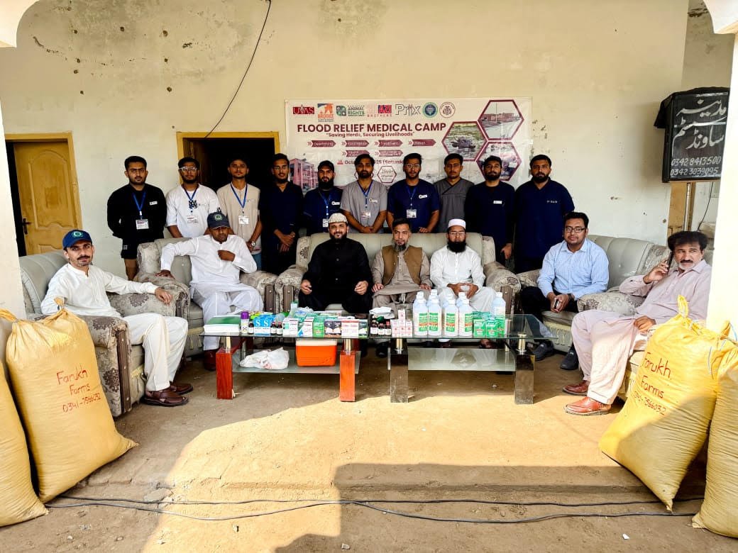 On behalf of CVAS Dairy Club, we're thrilled to share the highlights of the Flood Relief Medical Camp Phase 2, organized by CVAS Dairy Club in collaboration with PARAG, Additional Director Livestock Jhang and Punjab Food Authority, held in Pir Kot Sadhana, District Jhang, on 18th October 2025, under the visionary leadership of Worthy Vice Chancellor, Meritorious Prof. Dr. Muhammad Younus, Prof. Dr. Aneela Zameer Durrani, (Dean FVS) Prof. Dr. Ihtasham Khan (Principal, CVAS Jhang) and guidance of Esteemed Convener/Advisor of CVAS Dairy Club, Dr. M. Zahid Farooq, CDC Members Dr. Waleed Akram and Dr. Kamran Afzal.