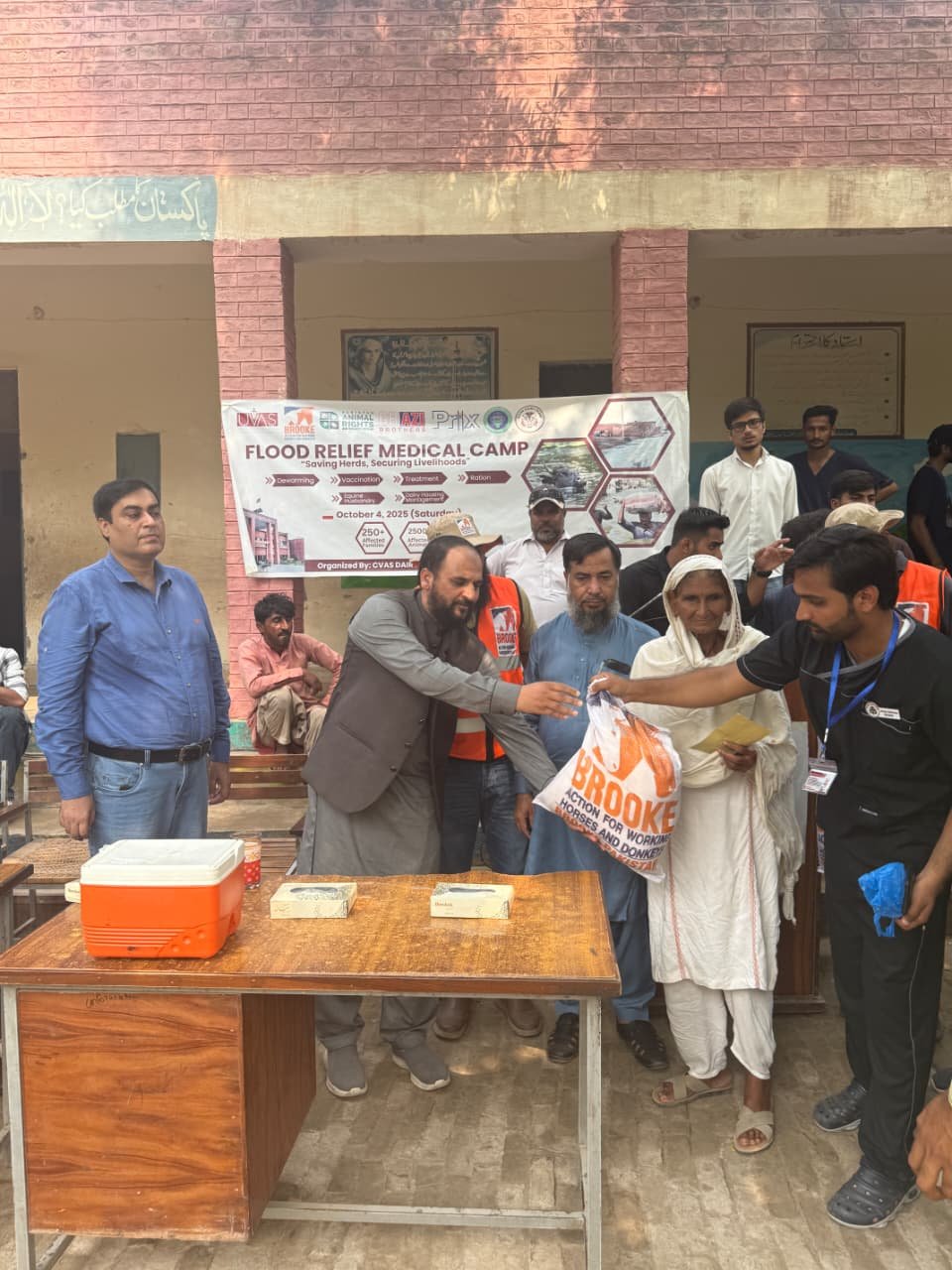 Flood Relief Medical Camp- CVAS flood2025 CLUB successfully organized relief camp for flood-affected animals, providing them with essential care and treatment at Moza Balian, near Shah Jewana Jhang, on 4 October 2025.