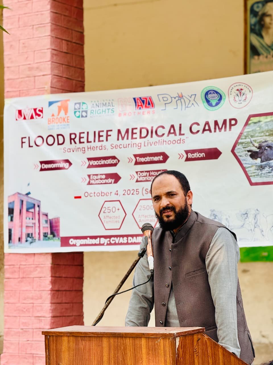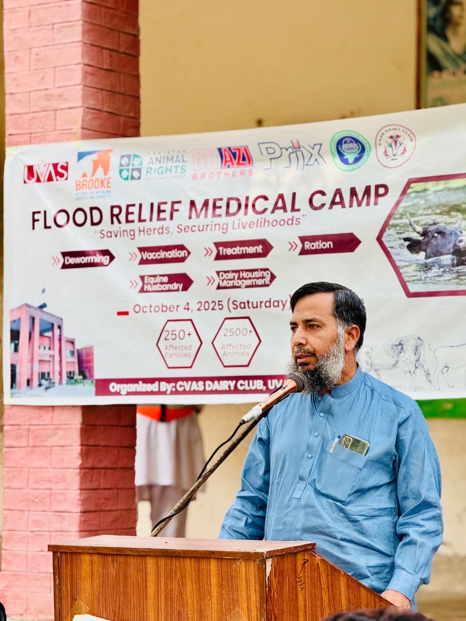 Under the vision of Worthy Vice-Chancellor, Meritorious Prof. Dr. Muhammad Younus (DLA.SI), Prof. Dr. Aneela Zameer Durrani Dean (FVS), CVAS flood2025 Club and under the guidance of Prof. Dr. Iahtasham Khan , Principal, CVAS, Jhang, Dr. Muhammad Zahid Farooq convener/advisor CVAS flood2025 Club, Prof. Dr. Ehtisham ul Haq member CDC Jhang, Dr.Kamran Afzal member CDC Jhang.